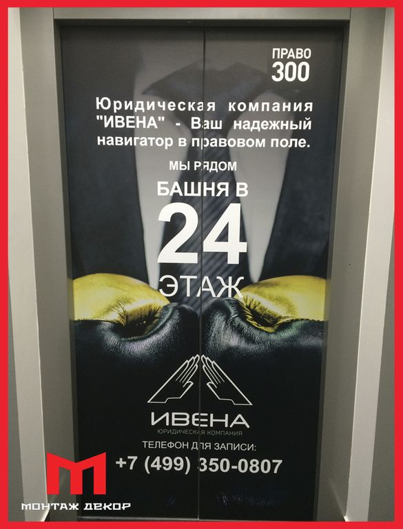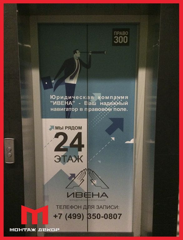 ООО «Монтаж Декор» обладает колоссальным опытом по брендированию лифтов в Москве. Компания располагает штатом дизайнеров, разрабатывающих идеи для продвижения, собственным производством для изготовления рекламной продукции, специалистами по монтажу наружной рекламы. Комплексный подход к реализации идеи позволит сэкономить клиентам средства и время. Наша компания осуществляет любое бренирование лифтов, любыми доступными матералами цены на которое при этом самые низкие по городу.